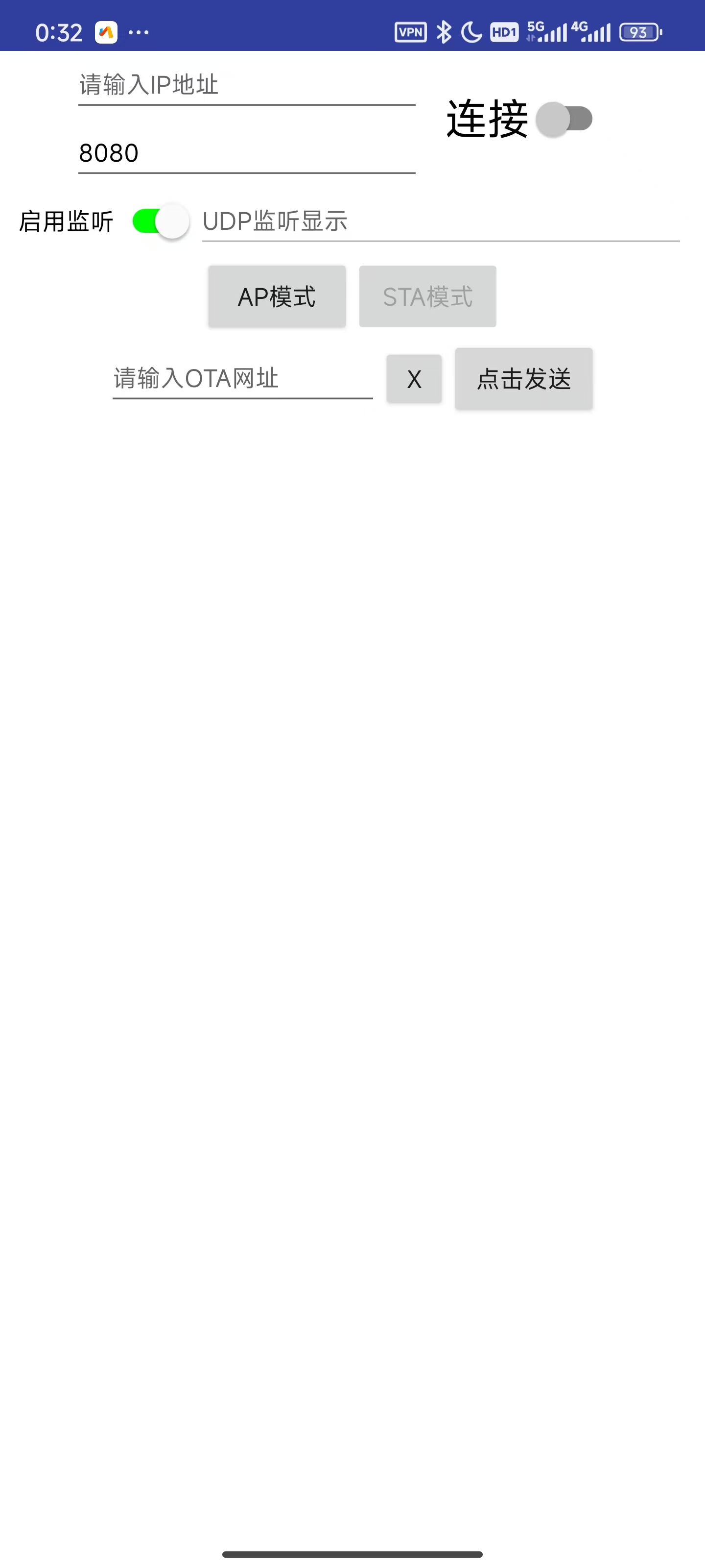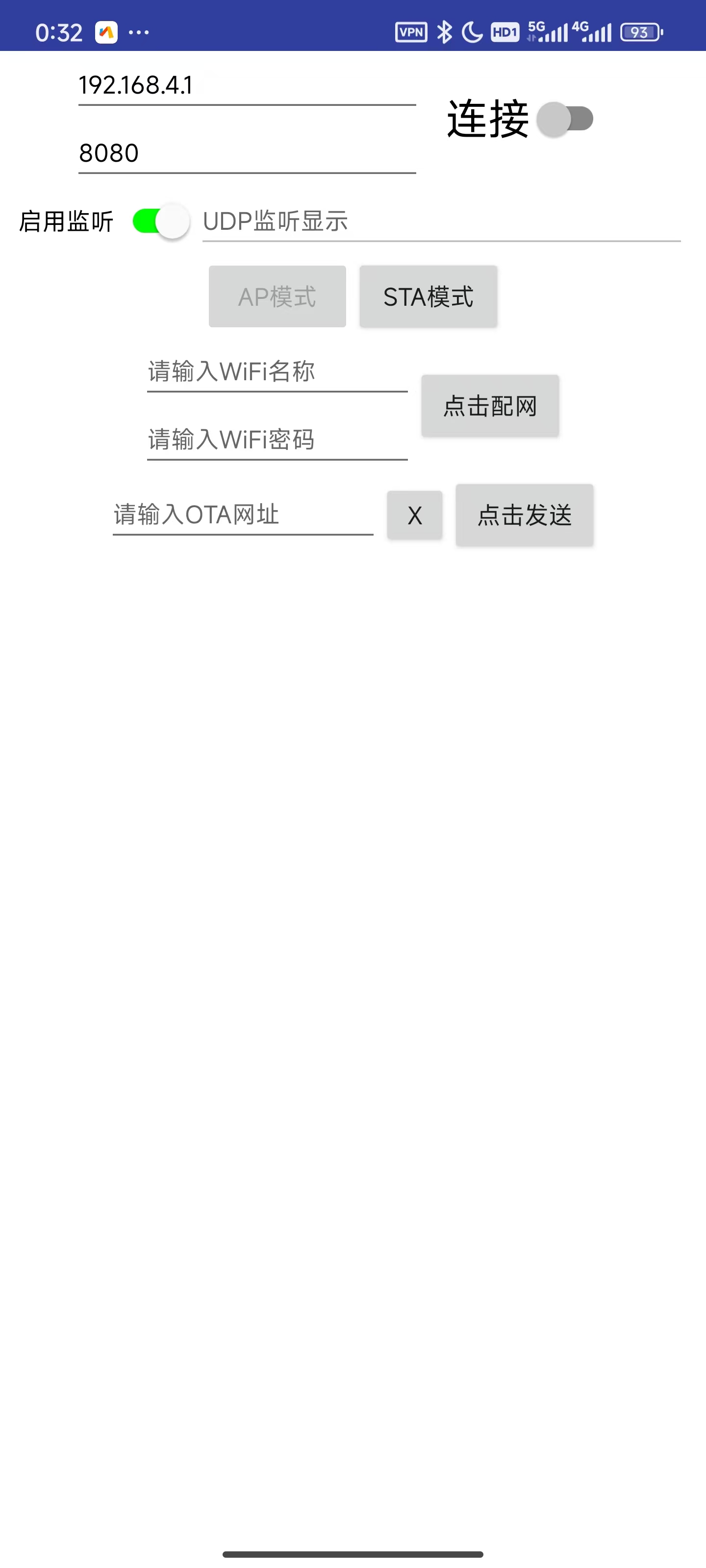 一开始其实想用蓝牙的,连接方便,单片机程序方便,手机APP程序开发也方便,就是太大了,我没开蓝牙之前编译完用了22%的flash(默认程序分配1.2M大小),开蓝牙一下子占用到90%,导致后续程序估计写不下了,最后就用了UDP。
