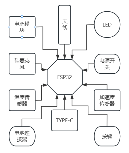 电源芯片接收来自电池或TYPE-C接口的5V电源并且降压稳压至3.3V给其他全部器件供电。