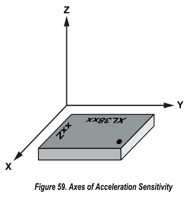 使用SPI通信连接,主控配置完成寄存器后从传感器的FIFO读取数据。能同时采集xyz三轴加速度数据与片内温度数据,最高16kHz采样率,16位分辨率,灵敏度可达7500。
